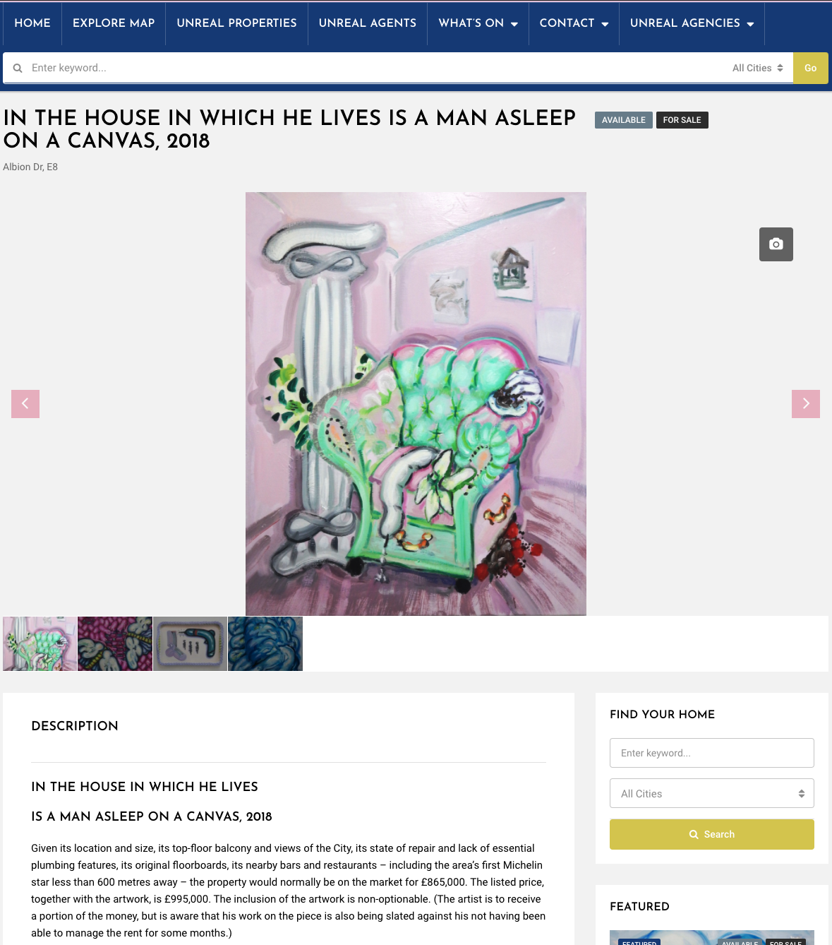 A group art + writing show, curated by Amanda Lwin, funded by Arts Council England. Unreal Estates explored property speculation, gentrification, domestic interiors, and uninvited occupation.